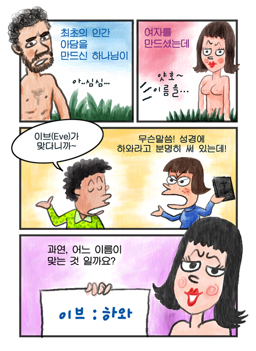영어 성경엔 '이브'라고 되어있는데, 우리나라엔 '하와'로...