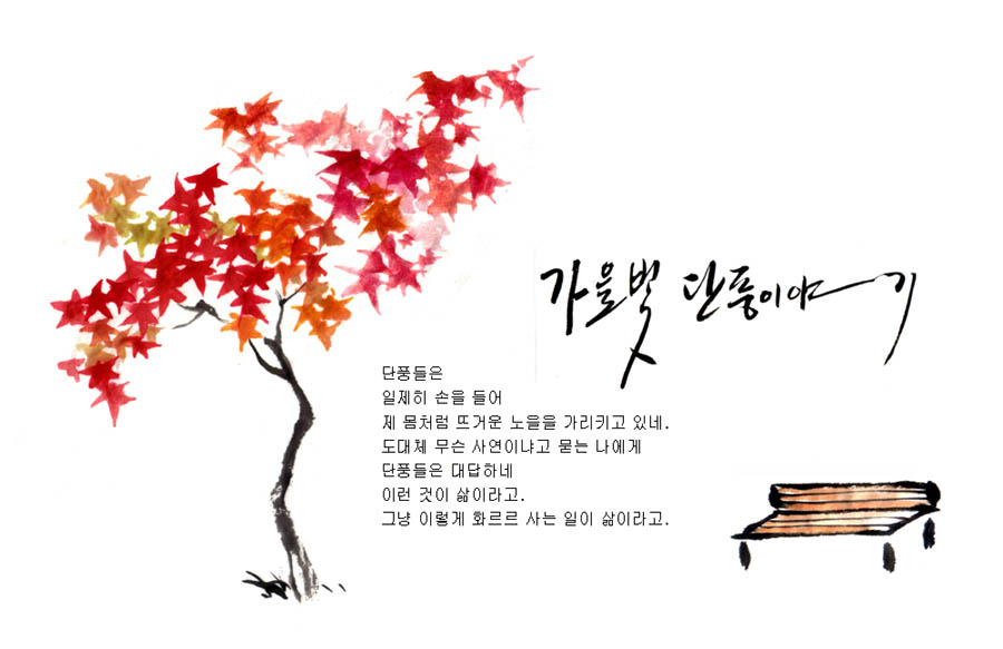 캘리+단풍 먹그림