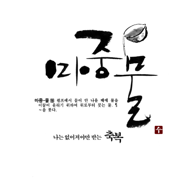 예인님 저도 캘리 부탁드려도 될까요? zenith 일반 0 5898 2009.05.11 23:19 매번 보기만 하다가 용기내서 초면에 부탁드립니다. 지역에 조그만 어머니 모임 명함에 들어갈 로고체구요 작지만 의미있는 모임이라 이쁘게 만들어 드리고 싶어서요. "마중맘"이라고 써주시면 될것 같습니다 마중물이란 순우리말에서 만드셨다고 하네요 샘플 하나 올려드리겠습니다 부탁드립니다