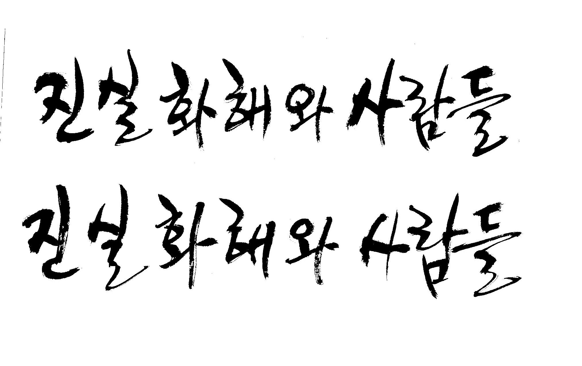 진실화해 와 사람들 캘리 부탁드립니당^^ 김철호 일반 1 8593 2009.01.30 09:50 > > 사보시안에 표지 메인 글짜로 쓸려고 하는데. > > 꼭 좀 부탁드려용^^ > > "진실화해 와 사람들" > > 바쁘신데 이렇게 부탁 드려서 죄송하고요 > > 새해 복 많이 받으세요! > > 감사합니다. >