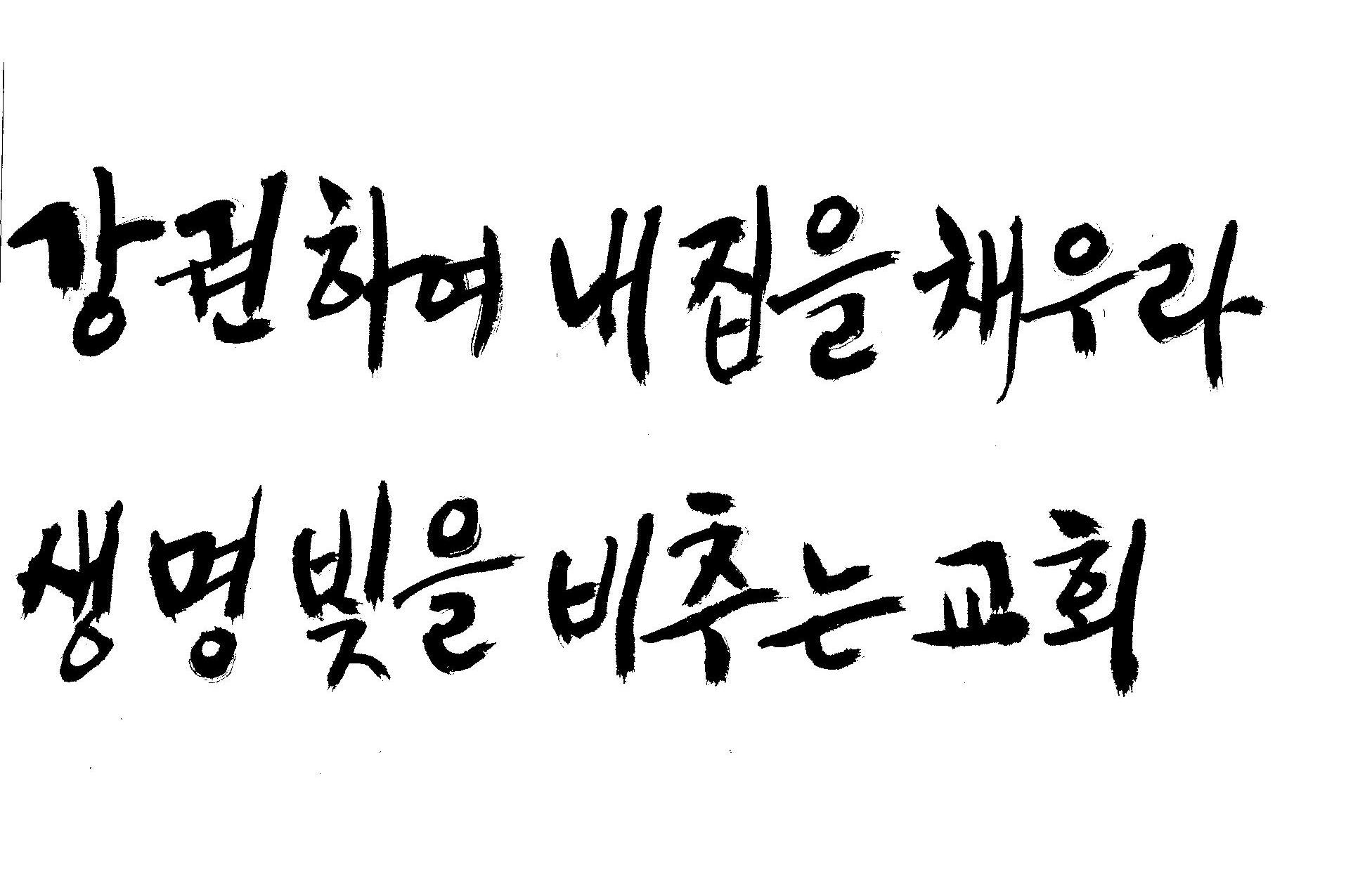 캘리 좀 부탁드립니다.^^ 감사합니다. 김철호 일반 0 8562 2009.01.06 22:42 > > > > > 교회에서 사용할 표어 제목입니다. > > > > 2009 강권하여 내 집을 채우라! > > 2009 생명 빛을 비추는 교회 > > > > 예쁘게 부탁드려요! 새해 복 많이 받으세요!! ^^ > > > "2009"는 2쪽에 이소영씨 캘리요청에 올려 놓은것을 쓰세요 > " 생명빛을"인데 "생명의 빛"이라고 했는데 편집하세요 먹 번짐이 있는 획은 약간 수정하면 좋을것 같네요..>