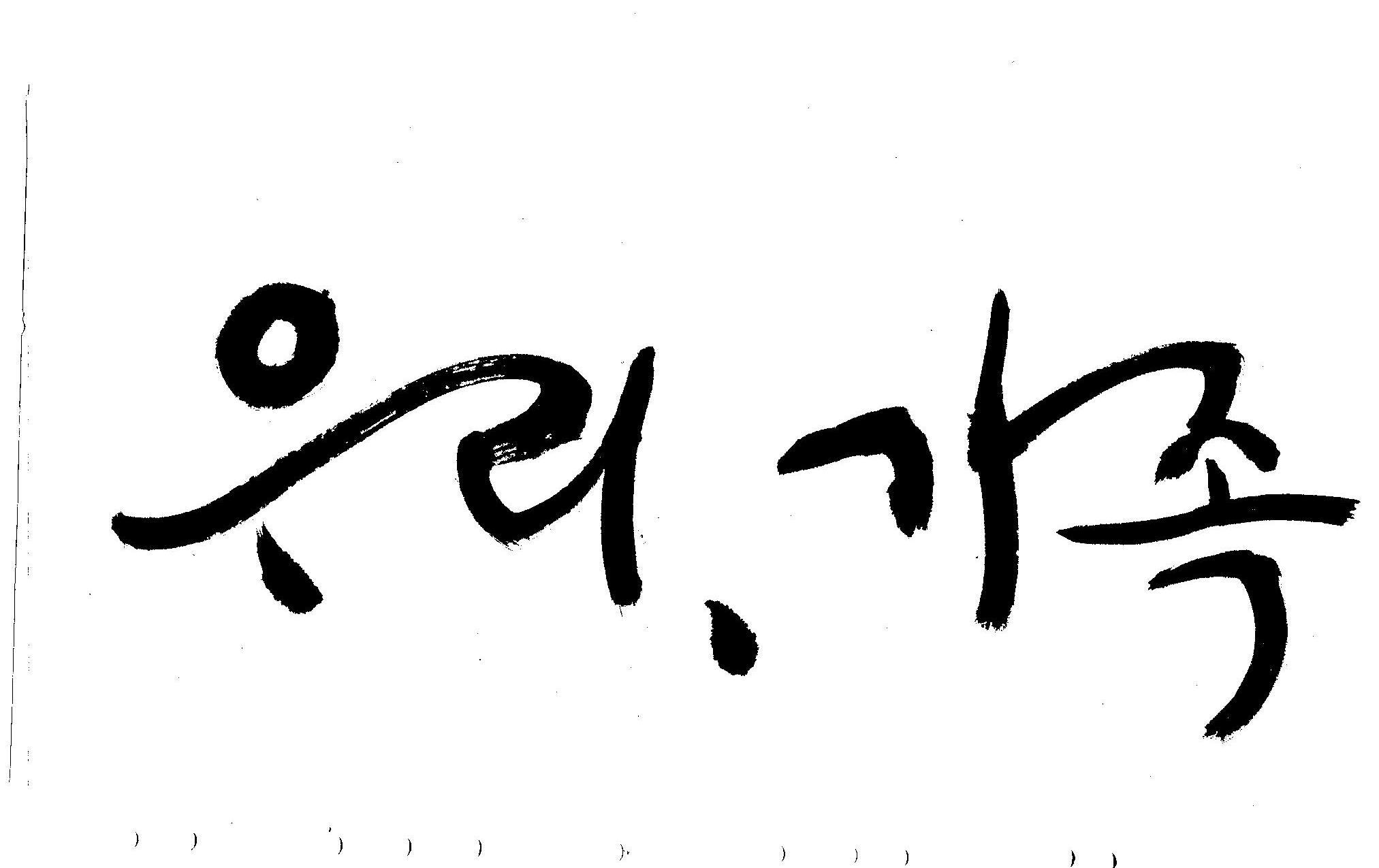기축년 신년 으뜸말 휘호 김철호 일반 0 5392 2009.01.02 20:21 어떤 으뜸말이 올해엔 필요할까... 고민하다가.. 언제나 그랬듯이 어려울때에는 무엇보다도 우리라는 공동체의 가치관이 더 필요할것 같고 가족이라는 최소의 가치가 (여기서 최소라고 하는것은 가치를 말하는 것이 아니고 가장기본적인 단위를 말하는 것입니다.) 무엇보다도 앞서야 한다고 느꼈으므로 "우리"와 "가족"을 주제어로 정했습니다. 이것은 무조건 내 생각입니다. 다른분들은 다른 주제어가 있겠죠... 어쨌든지 ... 새해엔 행복하고 건강하세요..