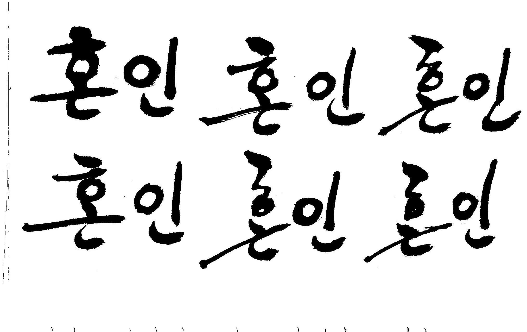 캘리부탁드려욤 .. >_< 김철호 일반 0 10154 2008.12.26 17:33 > > 안녕하세요 > 청첩장을 만들게 되었는데 > 고전적인 느낌으로 그림을 그렸거든요.. > 그런데 앞에 > > '혼인' 이라는 글씨를 한문으로 적어 넣고 싶은데.. > 한글이라두 괜찮아욤!!! ㅠㅠ > 캘리해보려고 시도는 해봤지만 너무 어려워서리..... ㅠㅠ > > [ 婚姻 ] <- (혼인할혼 , 혼인인 ) > > 캘리 부탁드릴수 있을까요?? > 도와주세요~ > 한글로 올립니다. 유용하게 쓰시길..