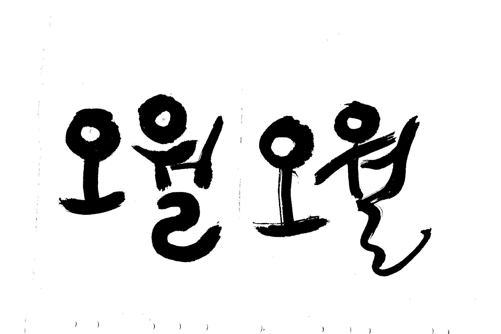 부드러운것으로 그 느낌이 날것같고..매끈한 선 보다는 자연스럽게 번지는 효과를 보는게 나을것 같네요, 여성적이다?? 글쎄..곡선을 강조하고 약간 선이 여린듯한 느낌이 좋을것 같네요 그래서 "오"자는 꽃이피는듯한 약간의 느낌이 가미.."월"자는 유연한 선을 강조하는쪽으로 방향을 잡았습니다, 오와 월의 강약의 리듬을 넣어서 완성, 우리 큰애가 문구점에서 빗자루 같은 붓을 샀는데.. 그걸로 급한데로 했는데 여성적인 느낌이 잘 안나온것 같아요..아쉽네여..약간 편집하셔요..