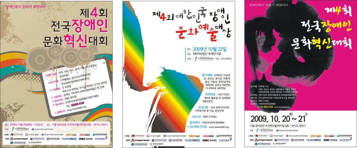 캘리 부탁좀 드려도 될까요? 길선진 일반 3 6753 2009.05.19 11:03 포스터에 제목을 좀 쓰려고 하는데요!!! 제4회 전국장애인문화혁신대회, 제4회 대한민국장애인문화예술대상 요렇게 두개만.. 부탁좀..드리겠습니다. -------------------------------------- 2절 포스터에 사용할 캘리입니다. 대충 컨셉은 첨부파일 정도로 하려고 합니다^^아직 수정하고 있는 단계라.. 미흡한 점이 많습니다.... 예인님 제가 미쳐 글을 보지못했네요^^ 죄송합니다!! 필요한거는 요번주 안으로다가 되면 좋겠지만... 바쁘시다면...조금 늦어져도 상관은 없습니다. 도와주세요~~~~
